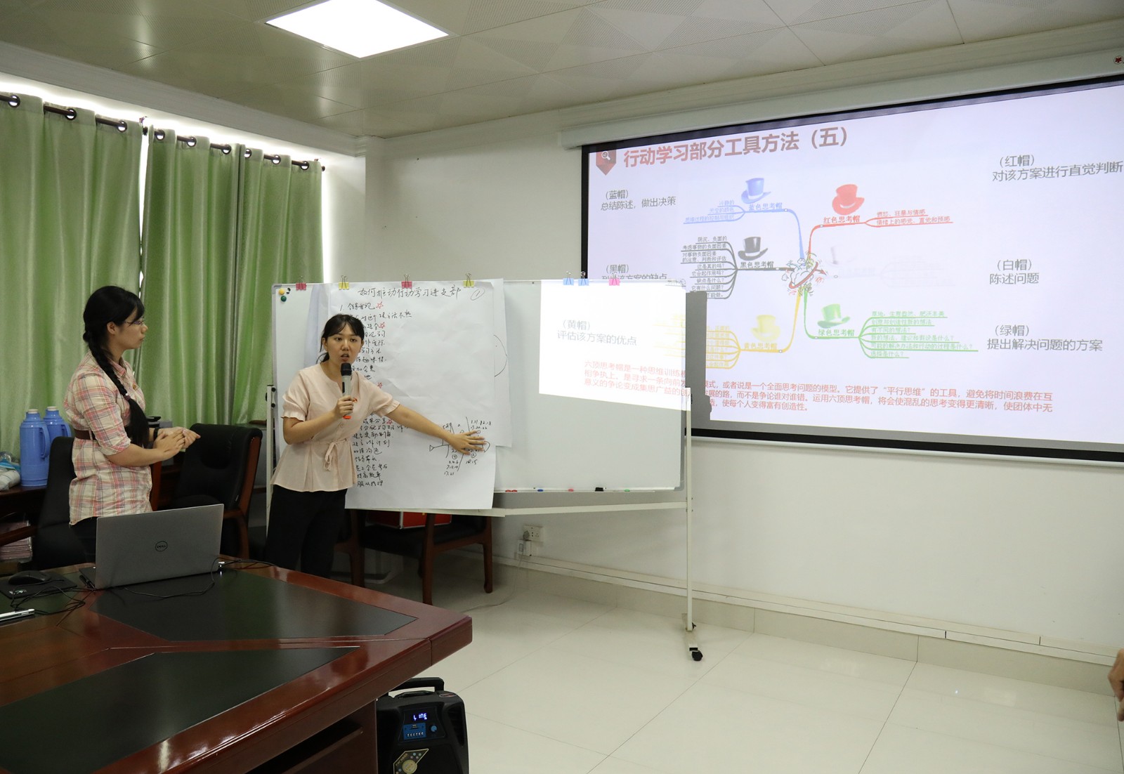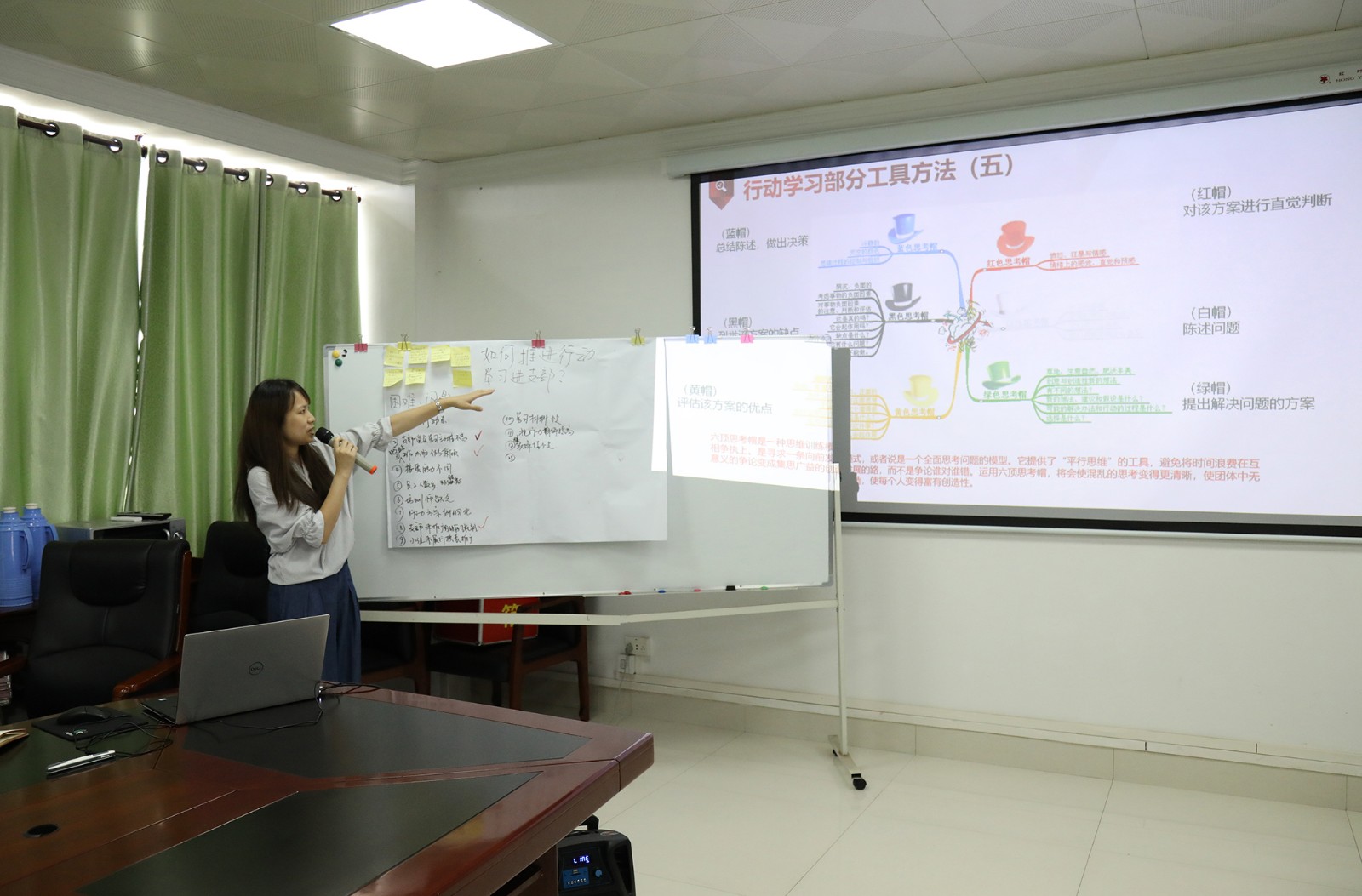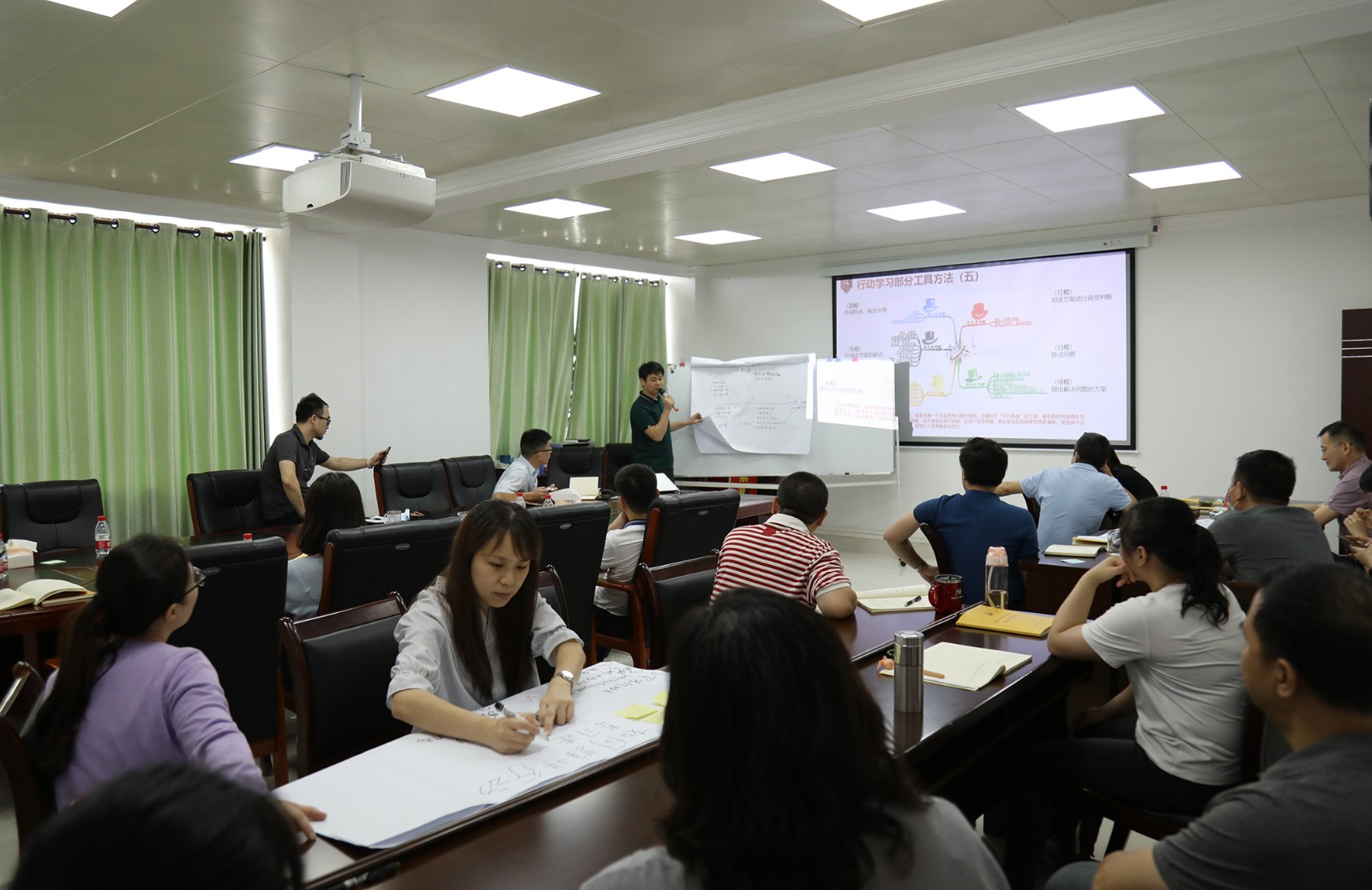 隨后各小組派代表依次上臺分享小組研討成果,其他小組則分別運(yùn)用“黃帽子”(好的)和“黑帽子”(不足)對其他小組展示成果進(jìn)行點(diǎn)評。在實(shí)操演練過程中,各小組成員積極參與踴躍發(fā)言,會場研討學(xué)習(xí)氛圍濃厚,大家在學(xué)習(xí)、討論、交流的過程中增長了用行動學(xué)習(xí)方法、工具解決實(shí)際問題的能力。